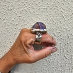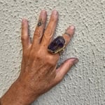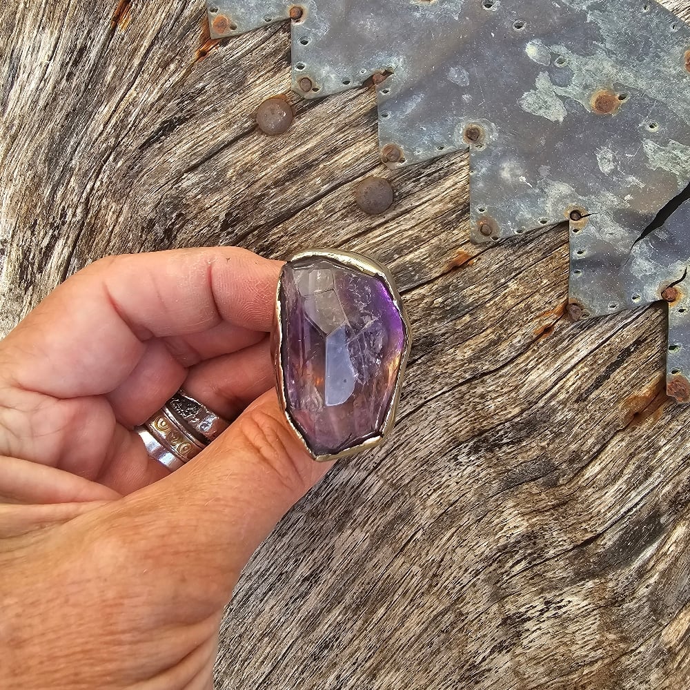 A big chunk of polished free-form faceted ametrine set in brass and made in my signature style.