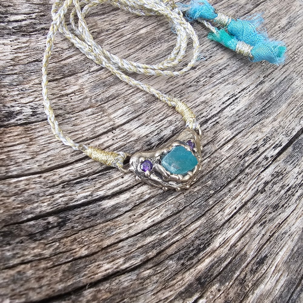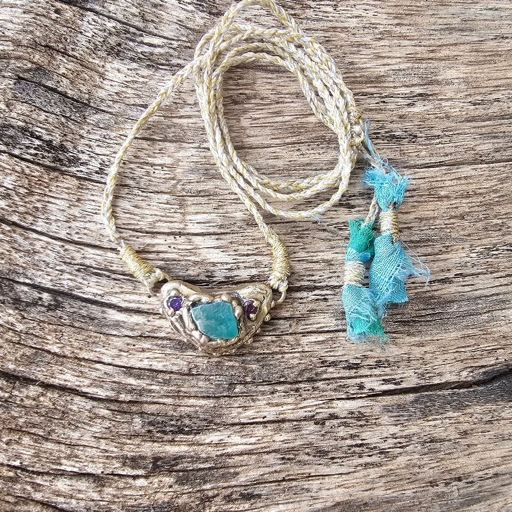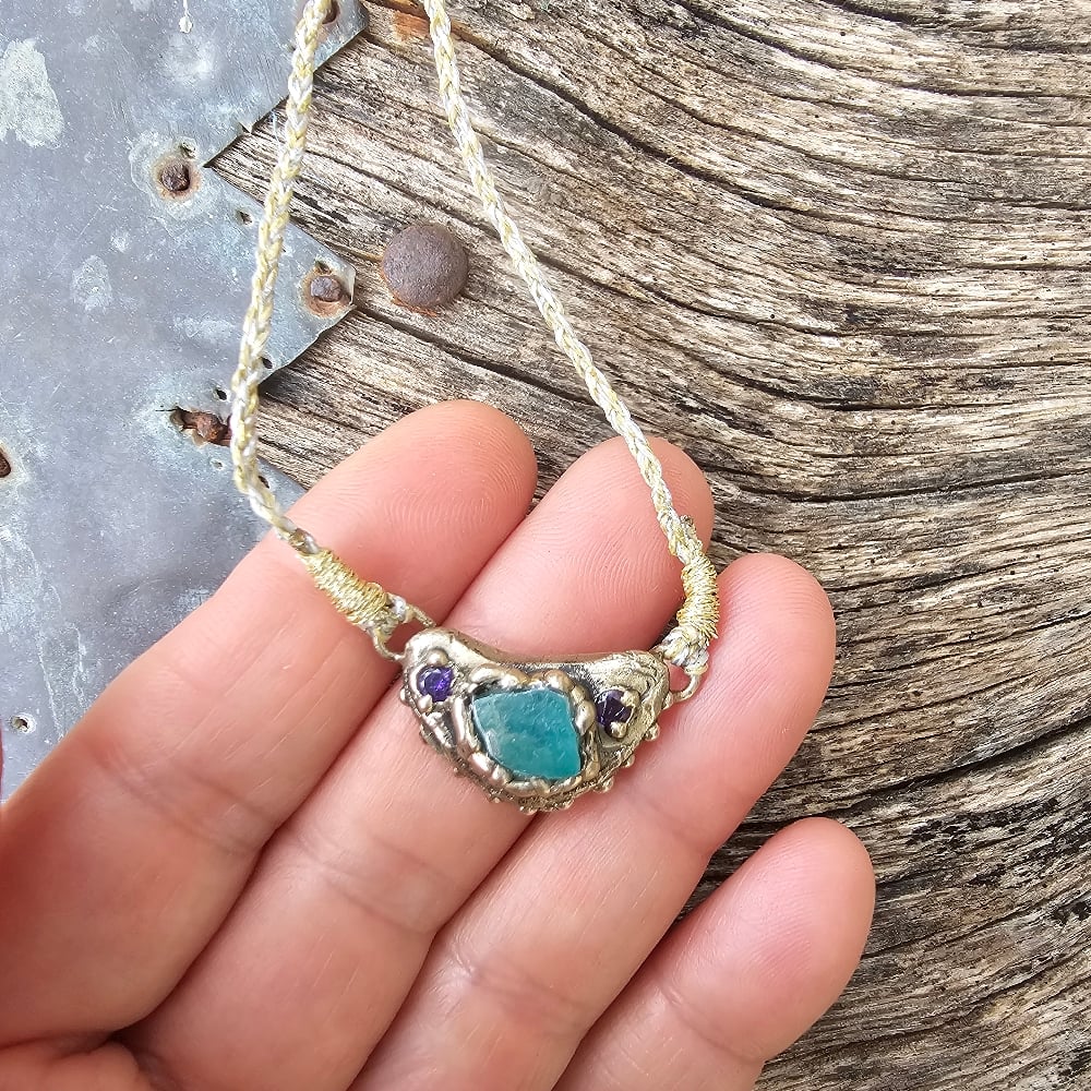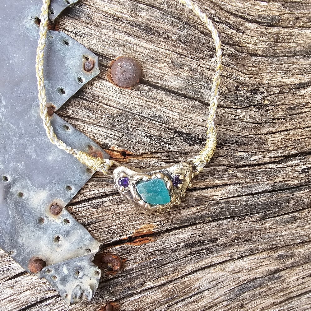 This brass "angel" is made with a central rough apatite and set with two amethyst CZ crystals.