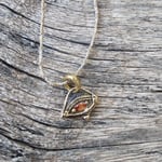 Brass eye pendant set with a citrine crystal on an adjustable hand woven macrame cord.