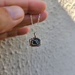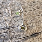 Framed sterling silver pendant set with a green tourmaline CZ crystal and strung on a fine sterling silver chain.