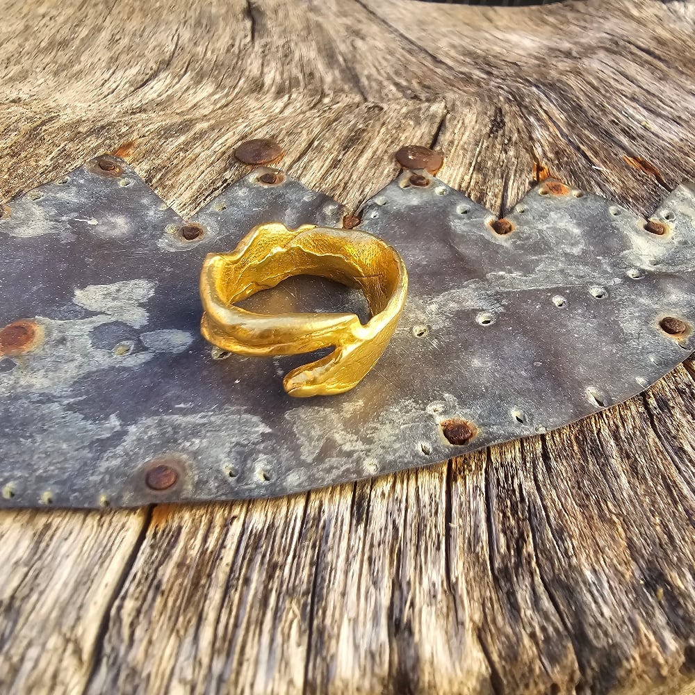 An organic shaped ring made of 18 carat gold washed brass in my signature wabi sabi aesthetic.