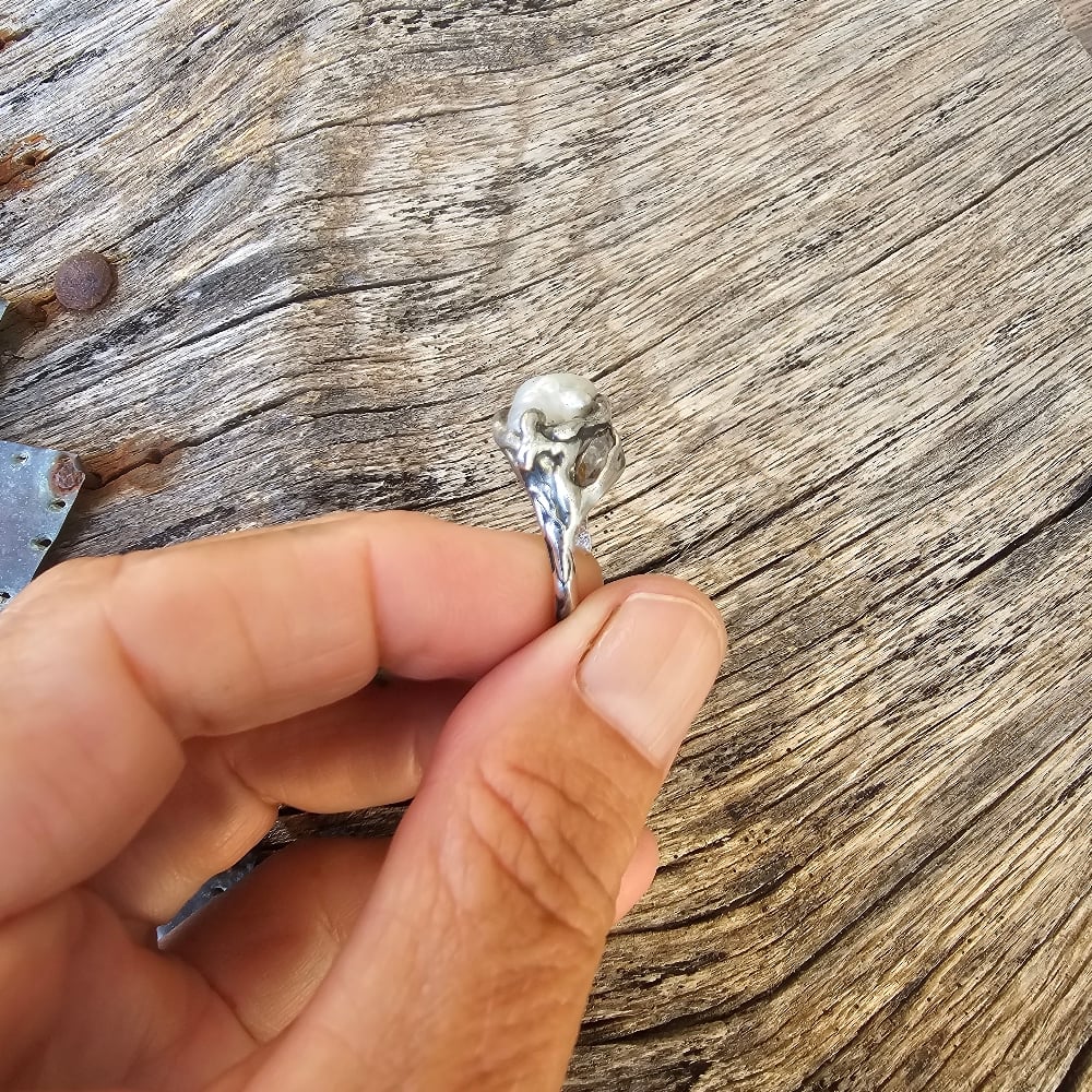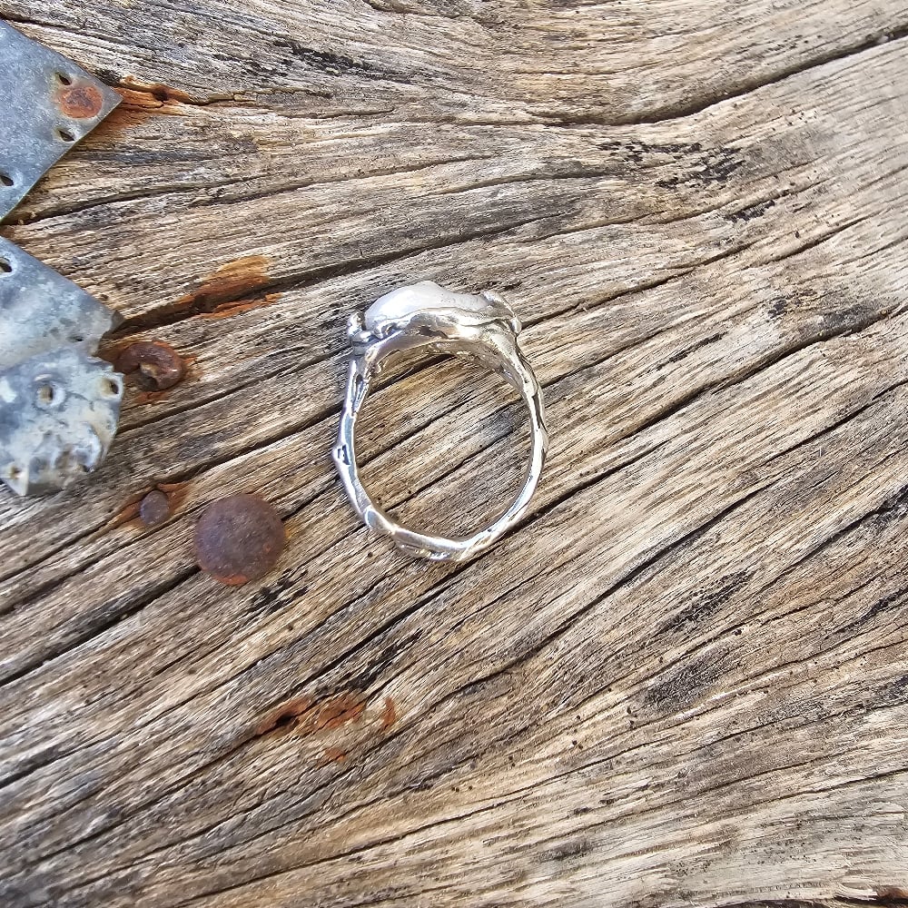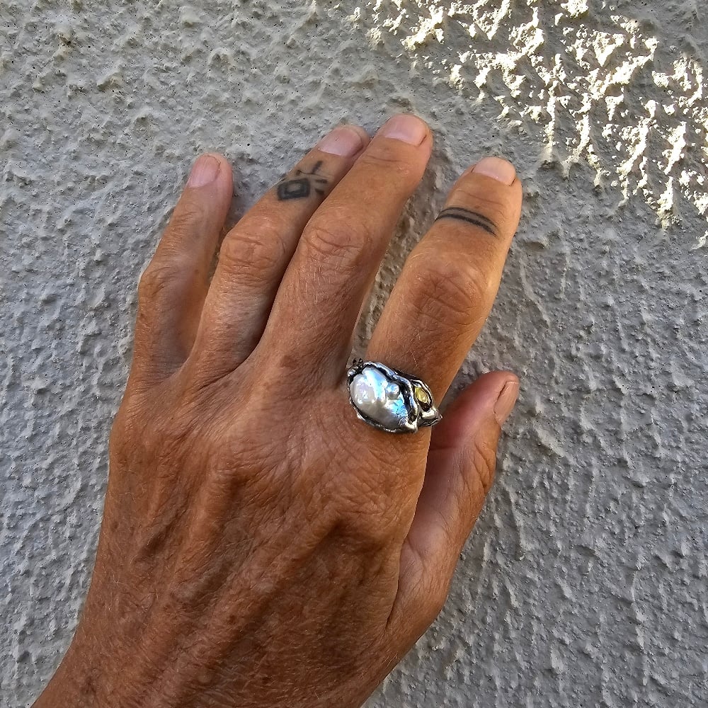 Sterling silver fresh water pearl ring in with citrine crystal detail, made in my signature wabi sabi aesthetic.