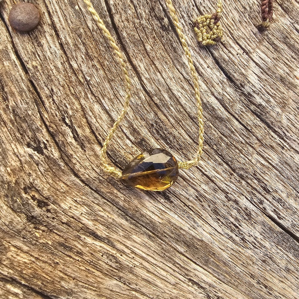 Gemstone touch necklace featuring a high quality faceted piece of beautiful topaz on hand woven golden macrame cord.